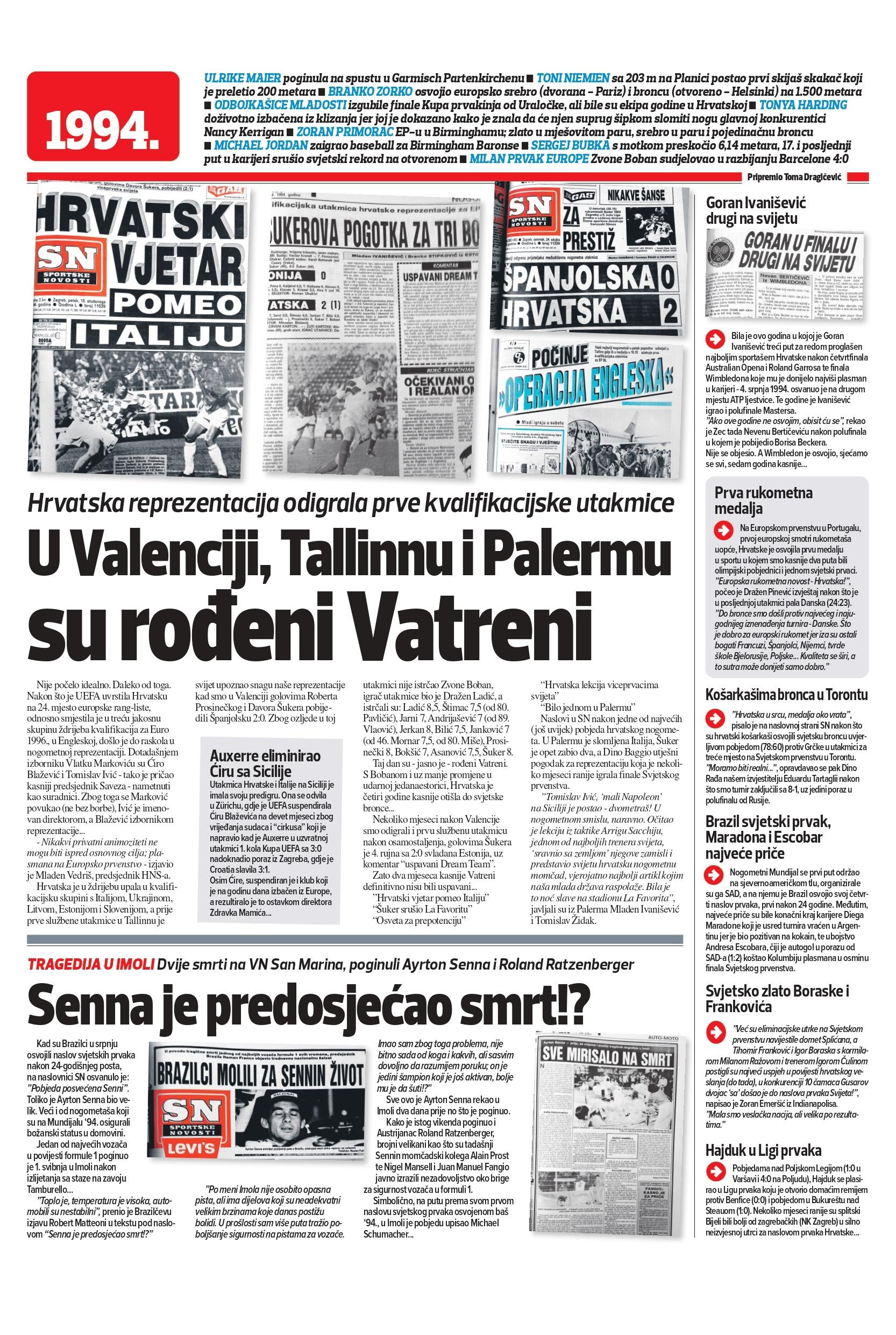 Povodom 80. rođendana Sportskih novosti donosimo vam najzanimljivije priče iz svage godine nađšeg izlaženja. Na redu je 1994.