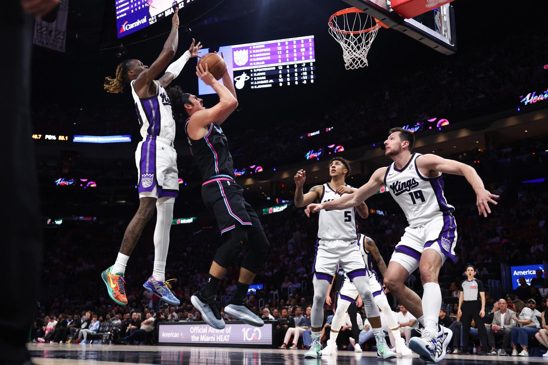 Sacramento Kingsi, predvođeni Zachom LaVineom, koji je u sezoni postigao 42 poena, pobijedili su domaću momčad 127-111 u Miamiju. LaVine je pogodio osam od 14 trica Sacramenta i Kingsi su ostvarili svoju prvu dvoznamenkastu pobjedu sezone. Dario Šarić nije igrao za Kingse.