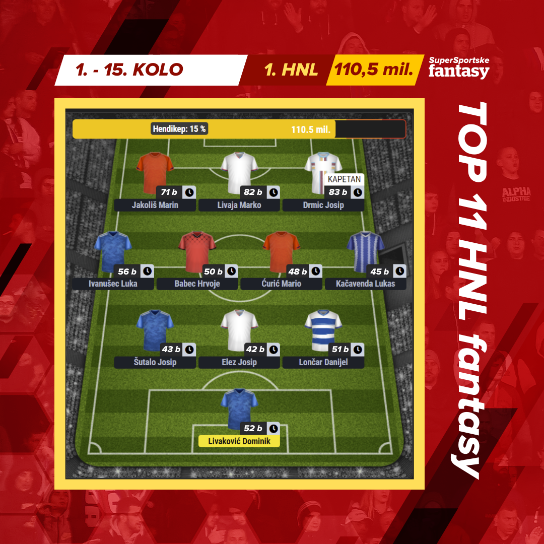 U tako izjednačenim dvobojima apsolutno nitko ne može biti pametan, pa se naš fantasysta odlučio s tobom podijeliti najbolju momčad sezone po osvojenim fantasy bodovima. Ono što svakako privlači pažnju je da su 2 igrača koja najčešće ove sezone svi spominju u raspravama oko najboljeg igrača HNL-a i kod nas imaju najviše prikupljenih bodova. To su naravno, nositelj Hajduka - Marko Livaja s 82 i torpedist iz Rijeke - Josip Drmić s 83 boda.