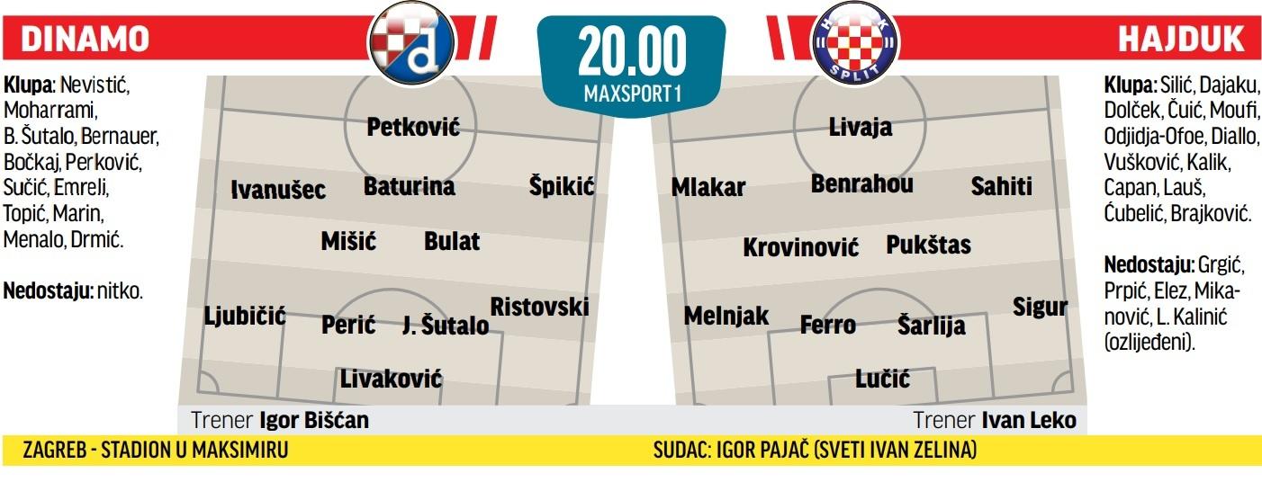 Igor Bišćan i Ivan Leko za petak mogu ponuditi samo nijanse promjena u taktičkom pristupu. Više manje je jasno da će Modri igrati čvrsto u bloku i tražiti bržu tranziciju, a na postavljenu obranu držati posjed, kombinirati i vrebati pukotine u bloku Hajduka. Splićani će biti slični kao u Superkupu, također zgusnuti u bloku i u posjedu pokušati nametnuti kombinatoriku kao alat za stvaranje prilika.