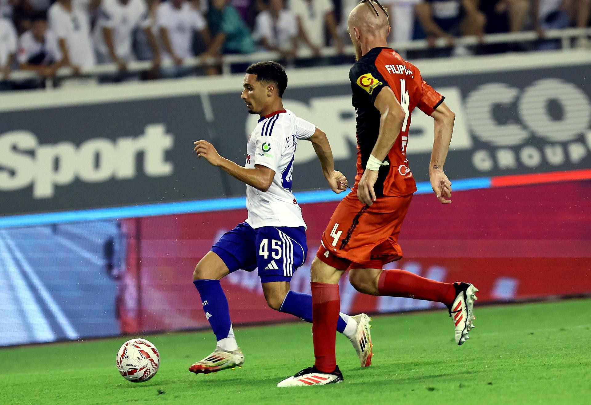 42. Benrahou je direktno potegnuo iz ukošenog slobodnog udarca, odbila se lopta od bloka do Krovinovića, koji je iz prve zapucao desnicom. Daleko od gola...