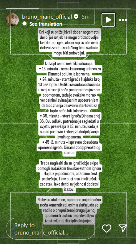 Na poluvremenu je svoje dojmove o kontroverznim sudačkim odlukama podijelio i bivši šef hrvatskih sudaca Bruno Marić.