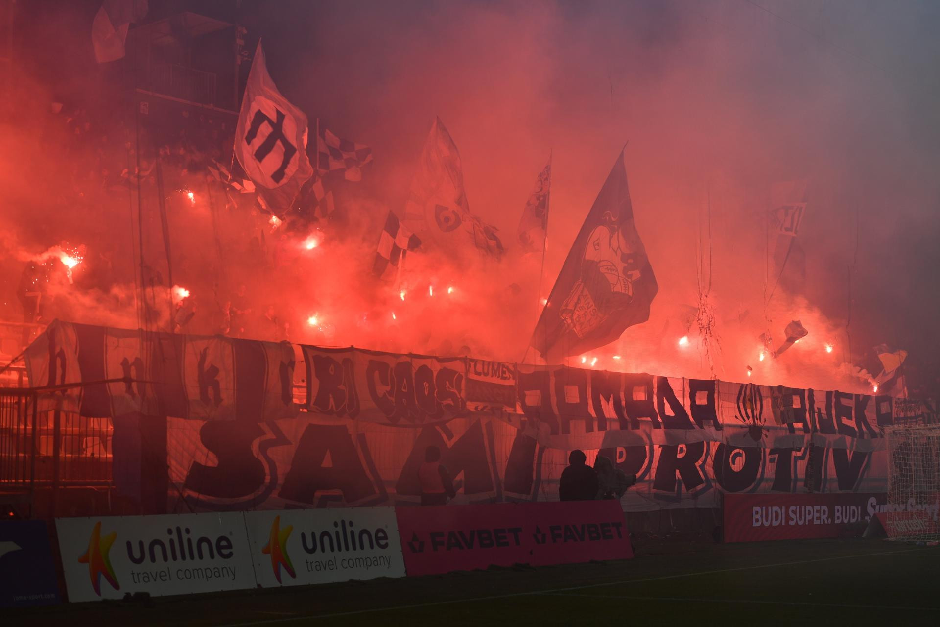 61. Nakratko je prekinut susret zbog bakljade sa sjeverne tribine, ali nastavljen je nakon minutu-dvije.