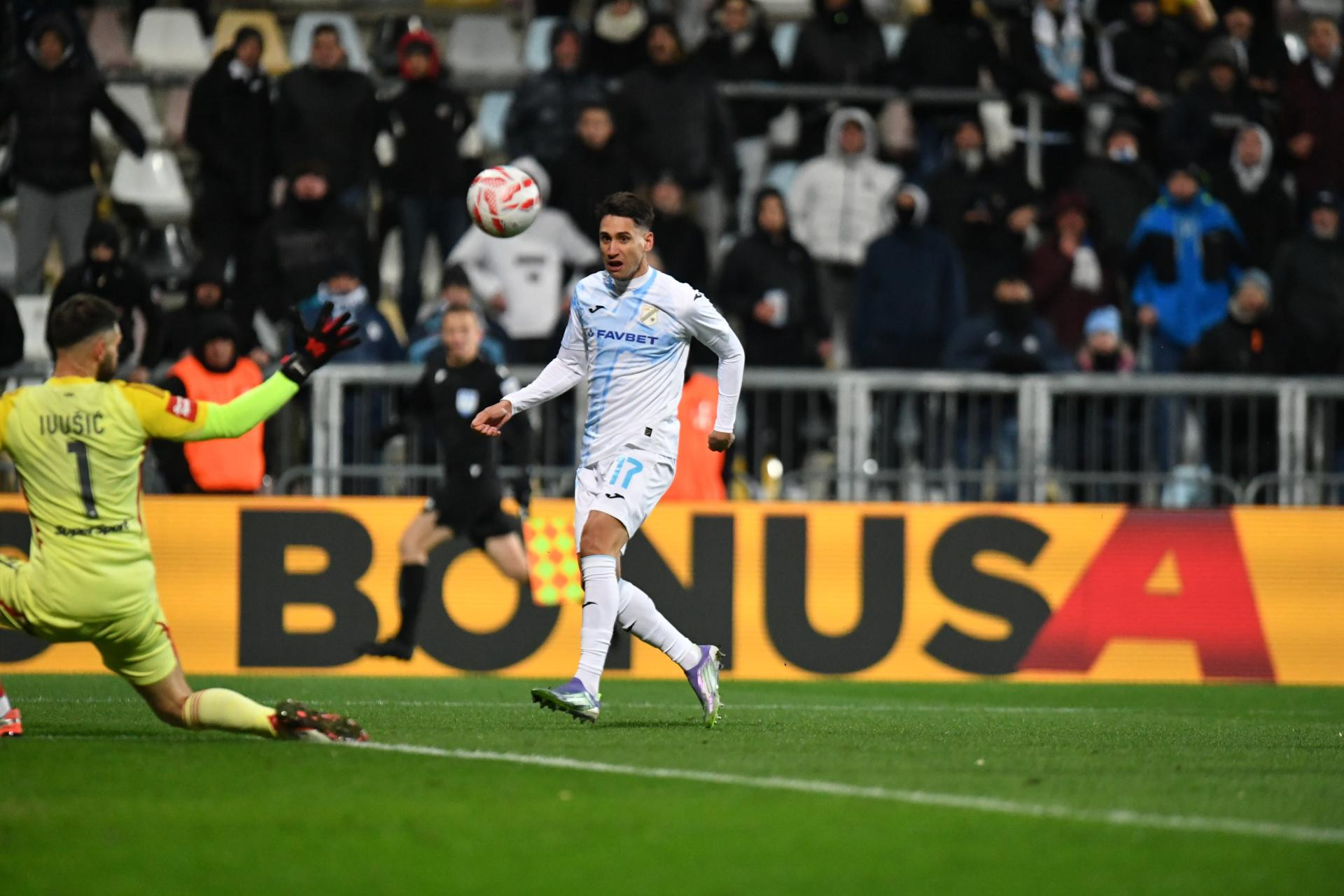 Fruk je gurnuo u prostor Luku Menala, a džoker s klupe sjajno iskoristio to dodavanje i ležerno prebacio istrčalog Ivušića za peti gol Rijeke večeras!