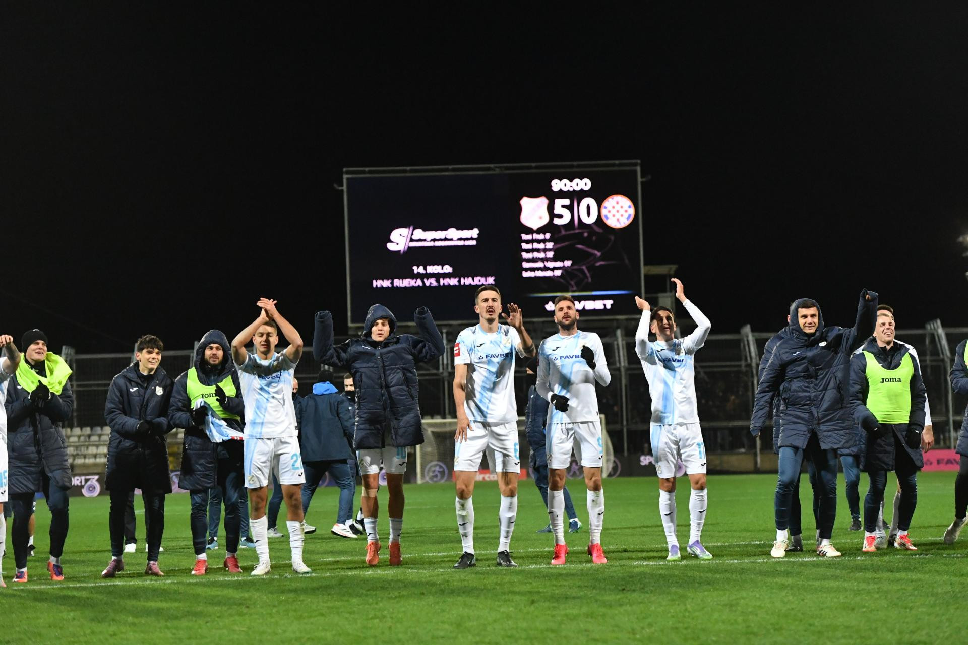 RIJEKA: Zlomislić - Majstorović, Husić, Radeljić - Oreč, Gojak (od 75. Ndockyt), Dantas, Vignato ⚽ (od 85. Menalo ⚽), Devetak - Fruk ⚽⚽⚽ (od 89. Jurić) - Adu-Adjei (od 75. Čop)
