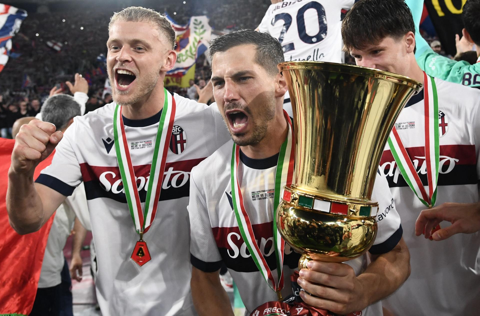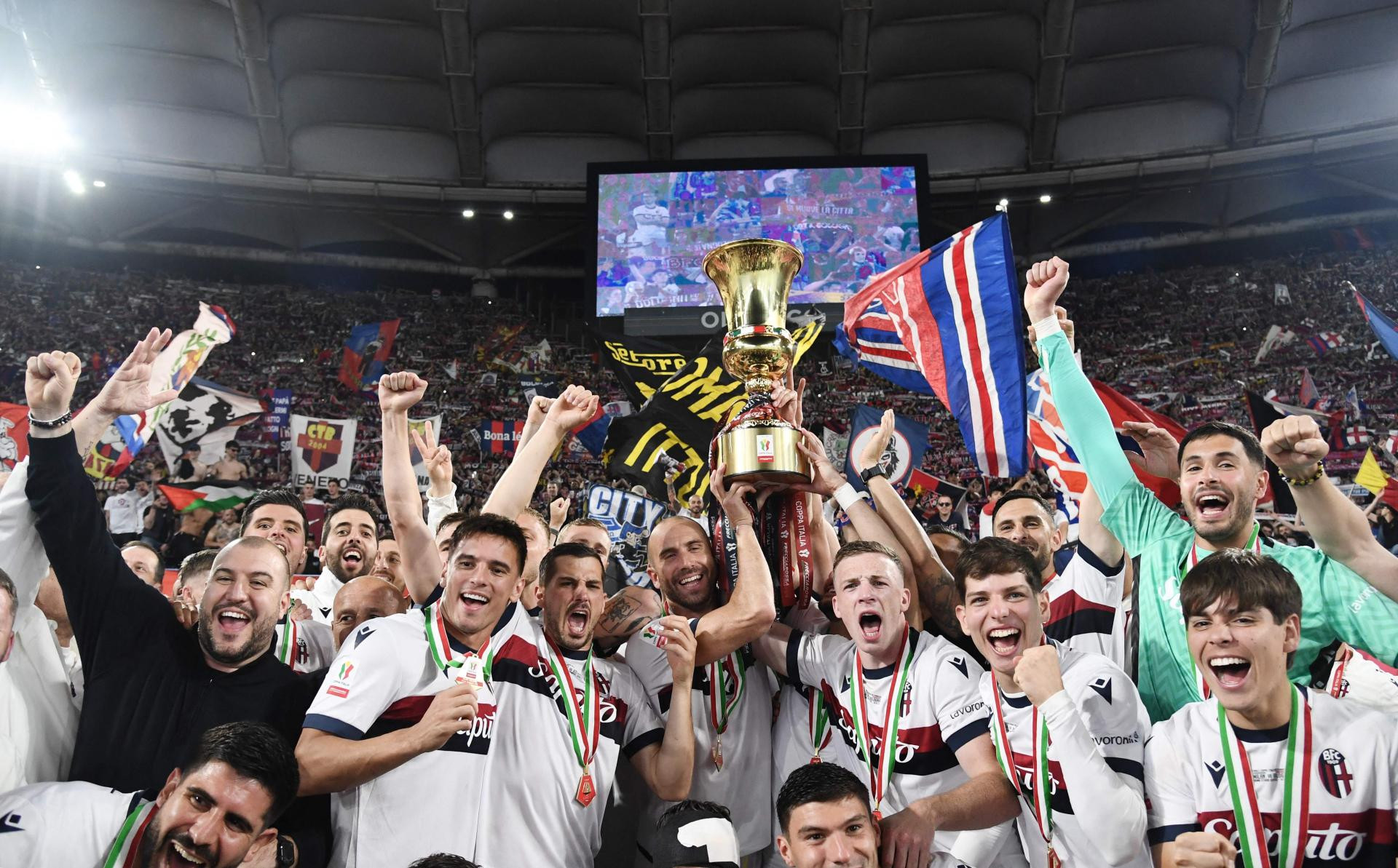 Klub je 60-ak milijuna plusa u mercatu dodatno osnažen, uz bonuse iz UEFA-ine LP stvorena je baza za nova ulaganja i iskorake. Ono što je međutim važno za navijače, opet je odigrana odlična sezona, u kojoj Bologna dva kola prije kraja još ima šansu igrati Ligu prvaka! No, ako ne uspiju, onda će nastupiti u Euro ligi i nastaviti procese rasta. To im je omogućeno na najljepši mogući način u srijedu navečer, kada su u finalu Coppa Italia, na Olimpicu u Rimu svladali Milan. Osvojili su prvi trofej nakon pola stoljeća i potvrdili nastavak europskih putovanja, i zarada...