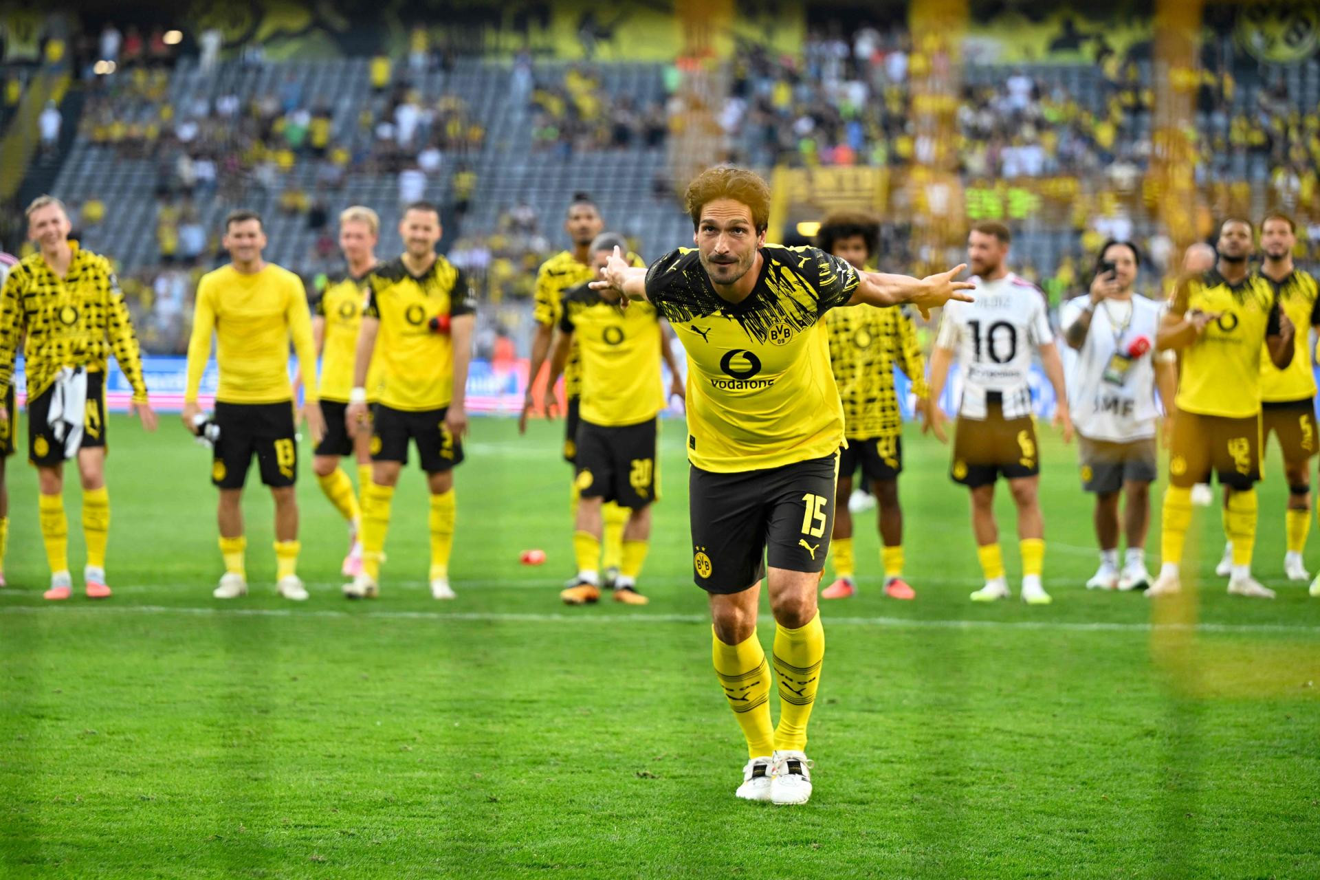 Inače, dvoboj na rasprodanoj Signal Iduni obilježio je oproštaj od karijere Matsa Hummelsa, negdašnji kapetan Borussije odigrao je početnih 17 minuta i onda uz ovacije s tribina i špalir igrača obiju momčadi po posljednji puta napustio je travnjak stadiona kluba za koji je odigrao 508 utakmica osvojivši sedam trofeja. Prije prvog sučevog zvižduka održana je minuta šutnje za bivšeg igrača Borussije i svjetskog prvaka 1990. godine Franka Milla, koji je preminuo 5. kolovoza u 67. godini.