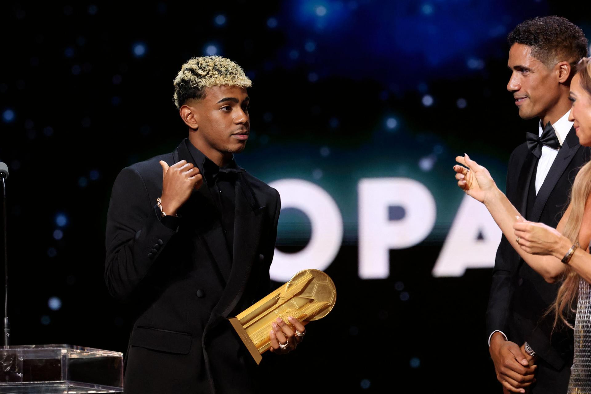 Kopa trofej za najboljeg mladog nogometaša osvojio je Lamine Yamal (Barcelona)! Nagradu mu je dodijelio bivši igrač Real Madrida i Manchester Uniteda Raphael Varane.