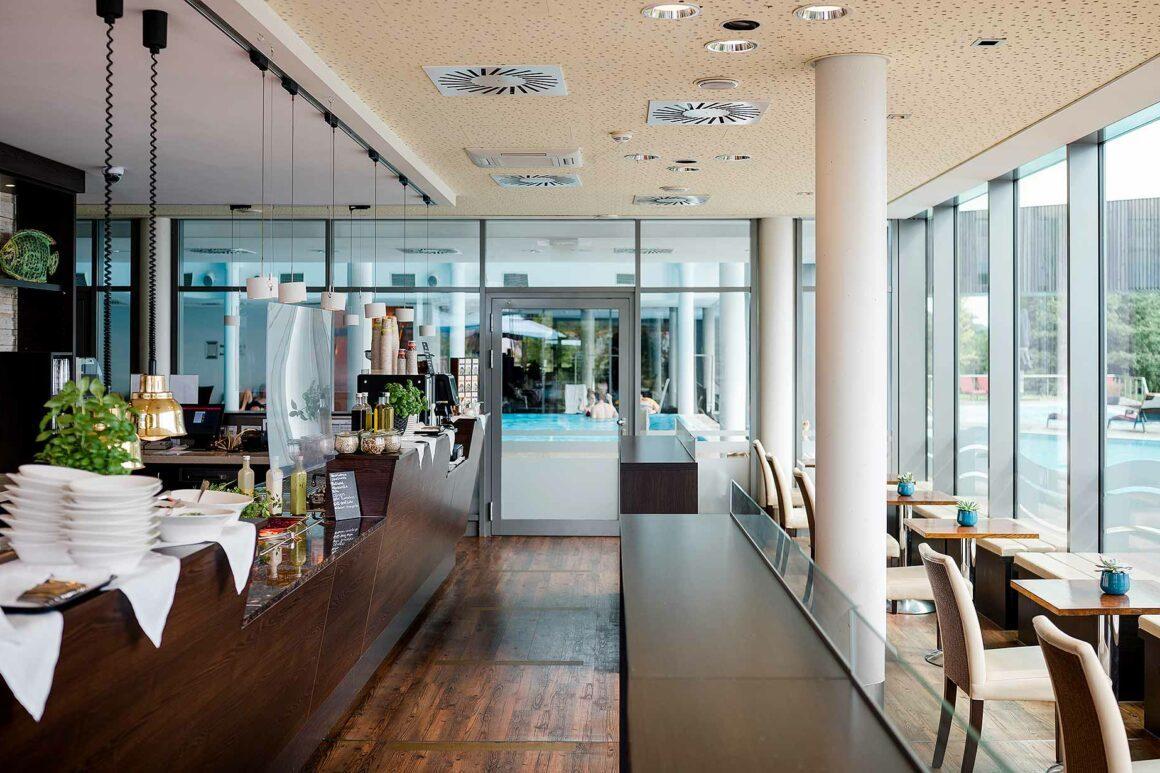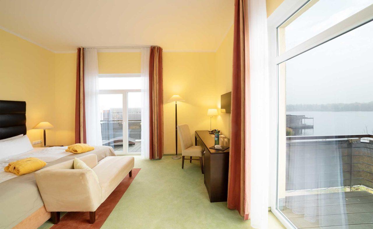Ima 130 soba, pet soba za sastanke, dva restorana i SPA područje od 5000 m uključujući najveću njemačku saunu koja pluta na jezeru. Ima i osam tematskih sauna, unutarnji bazen i tri vanjska bazena. Brojne profesionalne momčadi već su trenirale ovdje i bile su impresionirane dijelom za fitness - 280 m studijskog prostora u kombinaciji sa 75 m panoramskih prozora...