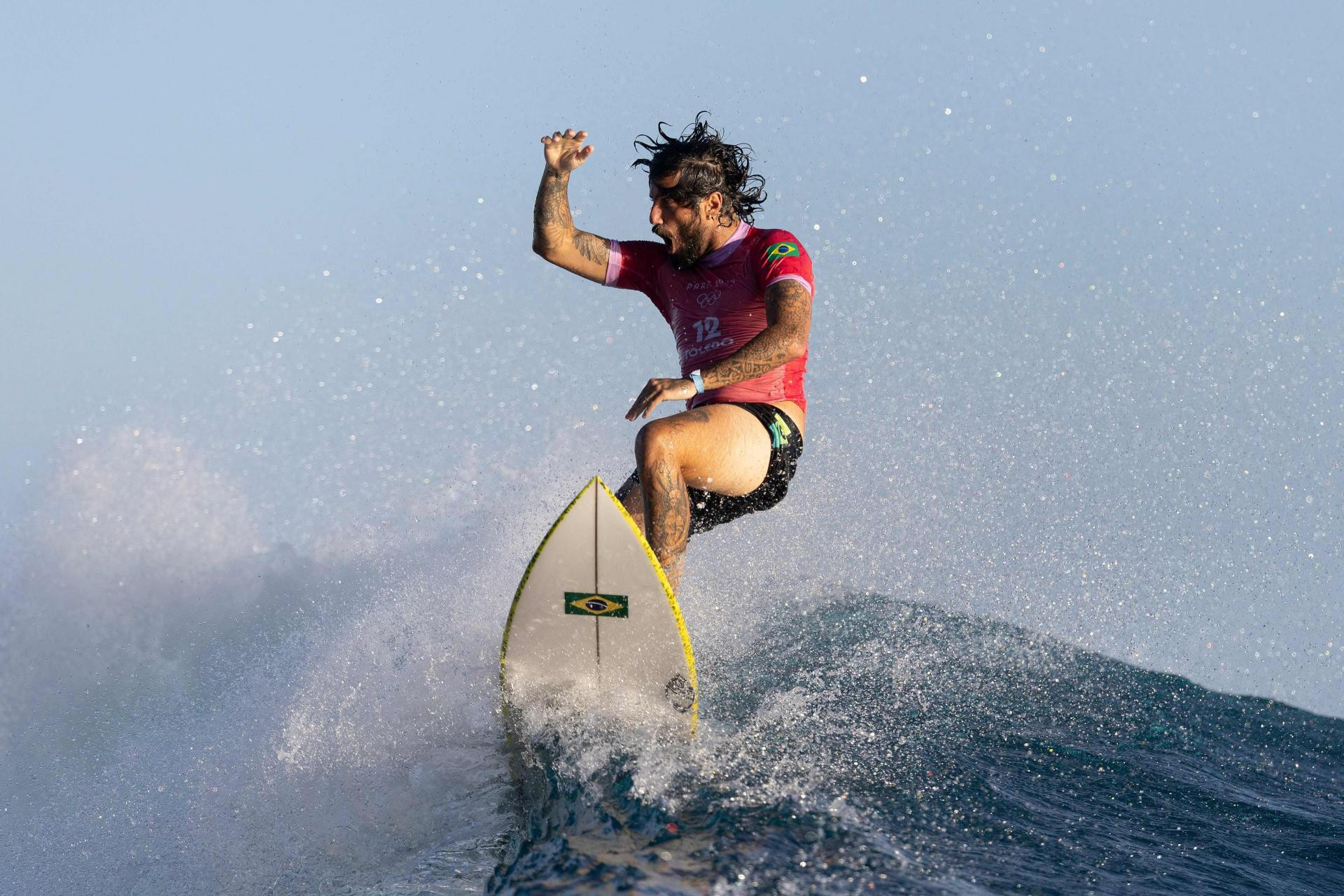 Olimpijska natjecanja se, kao što znate, ne održavaju samo u Parizu, a najudaljenije borilište je ono na Tahitiju, 15.700 kilometara od Grada svjetlosti. Fotograf AFP-a ulovio je sjajan kadar sa surfanja, na slici je Brazilac Felipe Toledo koji se plasirao u osminu finala.