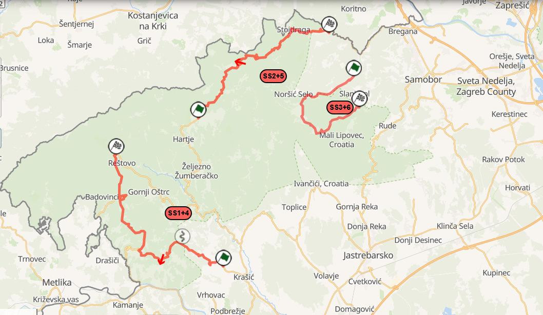 Pored “shakedowna”, koji je održan u petak ujutro, a koji u ERC-u služi i kao kvalifikacije za Rally2 klasu, pa su ti rezultati odredili startne pozicije za prvi dan, pravi šou na hrvatskom asfaltu počinje u subotu ujutro. Na rasporedu su tri dionice, sve su smještene na obroncima Žumberačkog gorja i sve su to većim dijelom dionice koje su se koristile i koje će se opet koristiti za hrvatsku WRC utrku.