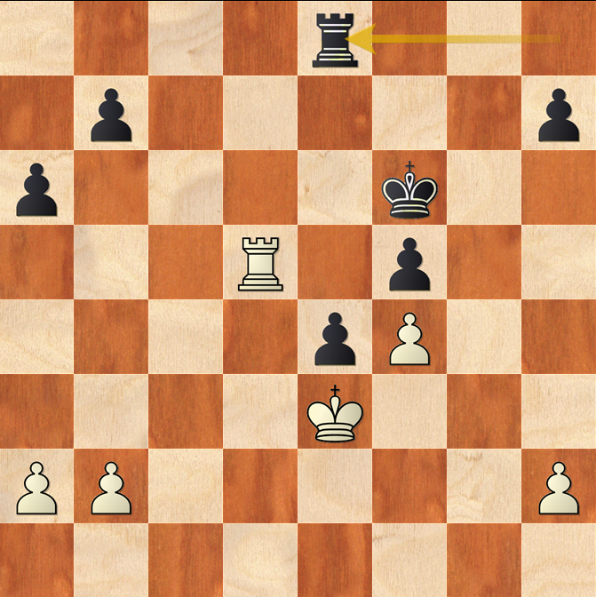 31.Td6+ Te6 32.Td7 Tb6 33.b3 Kg6 34.Kd4 Te6 35.Ke3 b5 36.a4 bxa4 37.bxa4 Tb6 38.a5 Tb3+ 39.Ke2 Kh5 40.Tg7 h6 41.Ta7 Kg4 42.Txa6 Th3 bijeli predaje