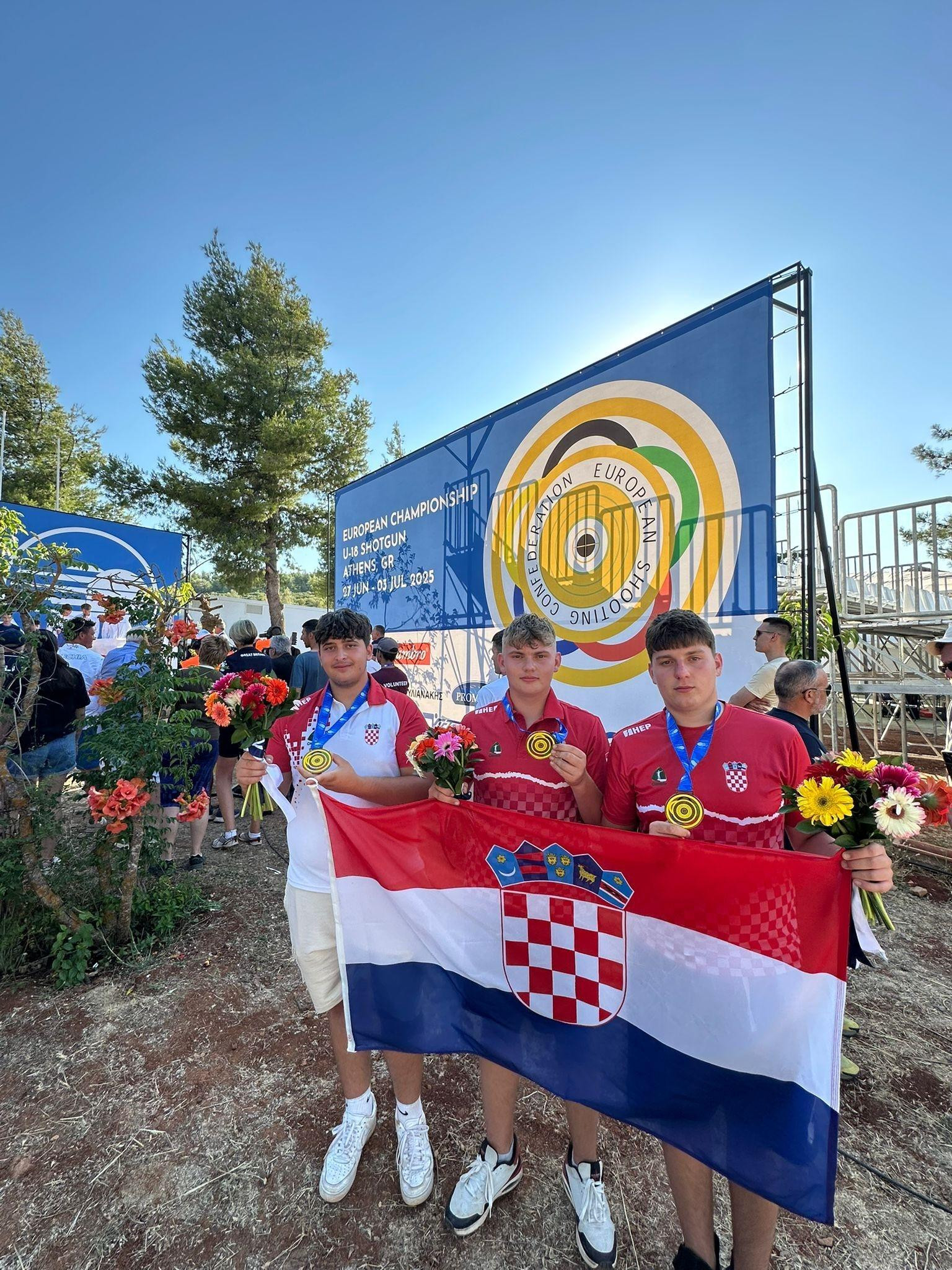 Naša mlada reprezntacija zaključila je europsku smotru s tri zlatne i jednom brončanom medaljom, te s dva nova europska rekorda, pojedinačnim i ekipnim. U ekipnoj disciplini trap trio zlato su osvojili Antonio Chiavalon, Diego Duniš i Leon Zegnal, koji su u finalu svladali češku reprezentaciju.