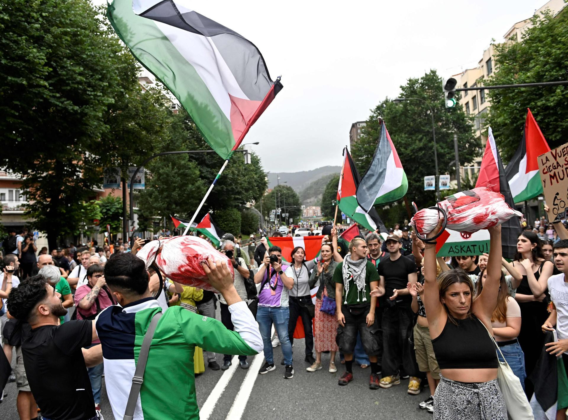 Jedanaesta etapa biciklističke utrke po Španjolskoj prekinuta je iz sigurnosnih razloga zbog propalestinskih prosvjednika koji su izazvali nerede na cilju u Bilbau. Etapa u dužini od 157,4 km, koja je započela i trebala je završiti u Bilbau, prekinuta je tri kilometra prije cilja, nakon što su propalestinski prosvjednici uzrokovali nerede na cilju u Bilbau.