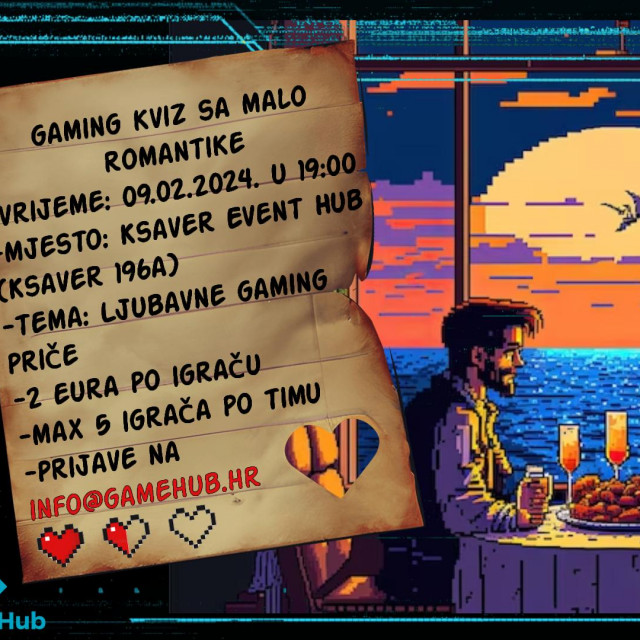 GameHub se vraća sa još jednim kvizom. Spremite se za nezaboravnu večer ispunjenu smijehom, zabavom i naravno, igrama. Ovoga puta osim naravno gaminga, tema pub kviza je i Valentinovo, tako da ćemo se zabaviti istražujući najupamtljivije ljubavne trenutke u svijetu gaminga.